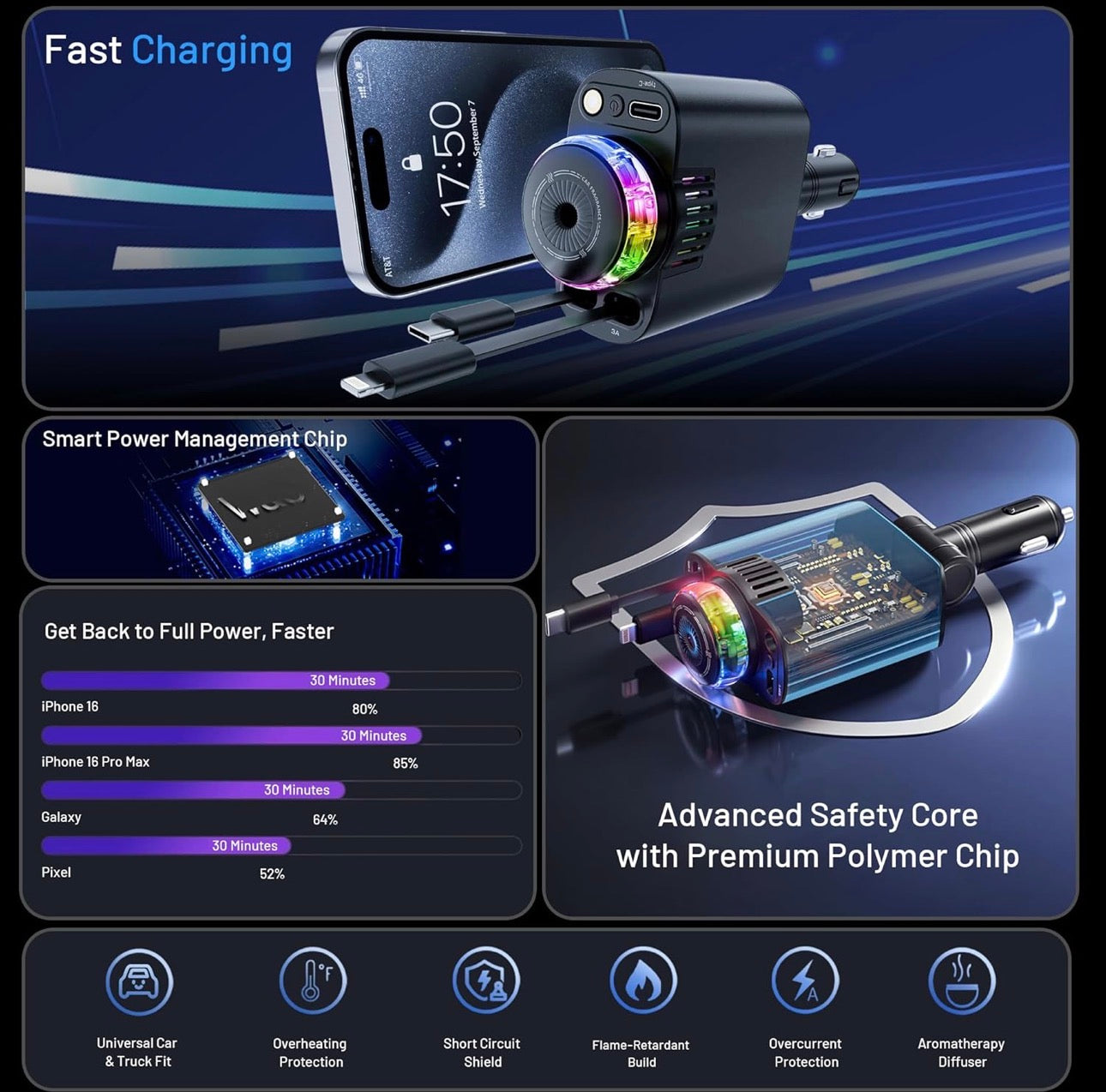 Experience unmatched performance with our smart car charger that blends innovative technology with a luxury design, providing fast charging and superior functionality for all modern drivers.